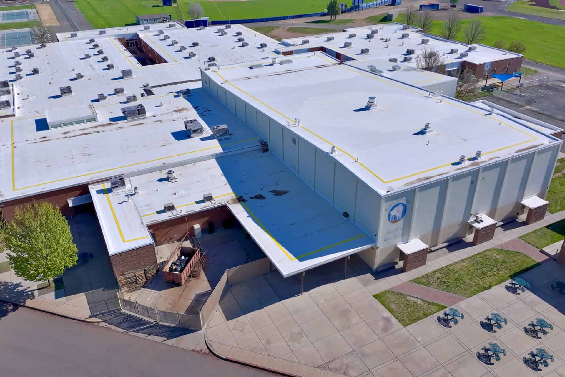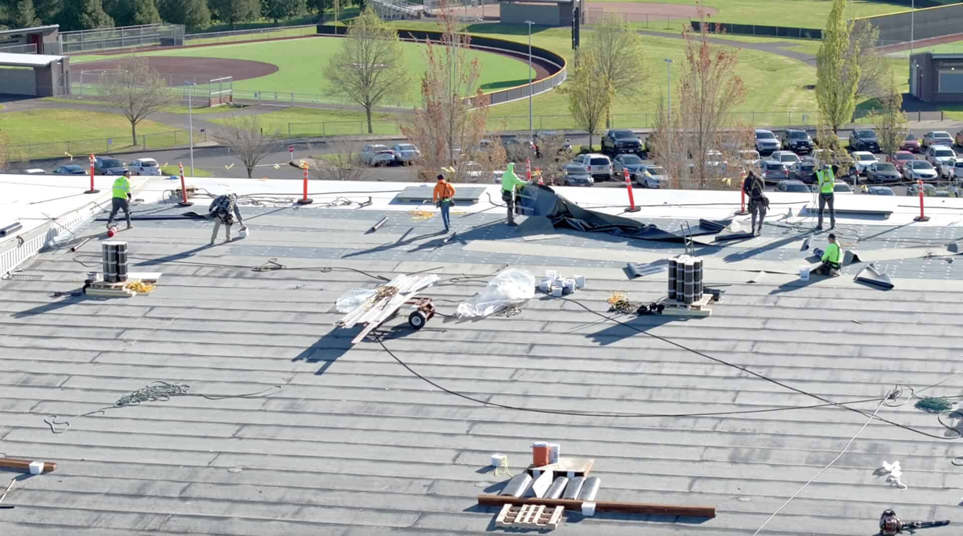 Re-roofing project for large high school in Oregon.