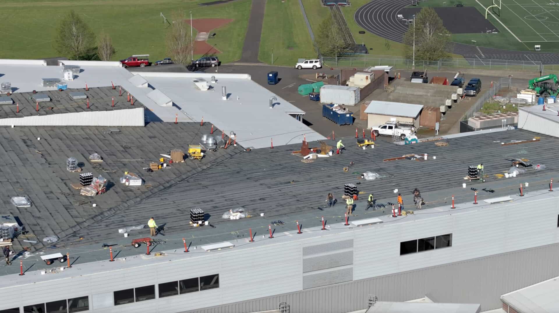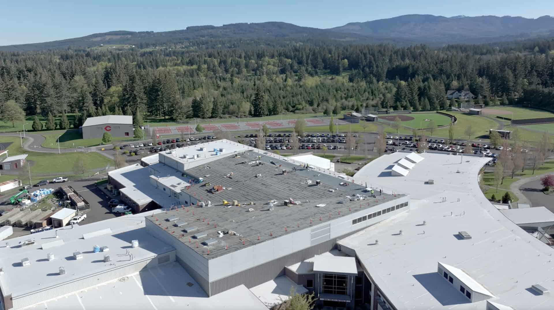 In-progress re-roofing project for large high school in Southwest Washington.